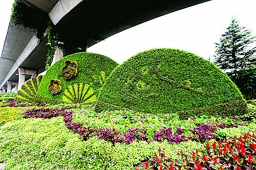在景区、主题公园和咱们的生活中,通常看见一些艺术作品,其中绿雕便是当中好看的一道风景,随着绿雕式样的不断进展,技巧愈来愈准确,细节样式纹理刻画从而更加细致。“高颜值”不只是能够吸引人们过来赏玩、合影留念,还能美化周围、渲染出欢乐气氛,提升景区、主题公园的品味及形象。绿雕又叫绿色雕塑,被称为世界园林艺术的奇葩,是具有生命的植物雕塑,一般来说内设钢材架构,接着在构架上填充栽培土,再于其上培育一年生及多年生小灌木及草本植物,即运用挂泥插草及卡盆工艺把不同颜色的花草覆盖在结构技巧的表面上,很好地把雕塑技巧与花卉园艺结合在一起,钢架表面上的植物覆盖率起码要得到80%。