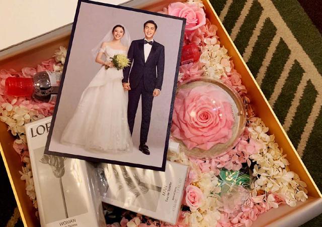 除了这些很有诗意外,两个人的伴手礼也于6月26日曝光。在二十六日一大早,各记者和两人的好友就已经收到了他们的伴手礼。伴手礼是以粉红色为背景的,不仅有永生花、化妆品,还有两个人的婚纱照。看来,他们是想把这一份甜蜜爱情展现给众人看。虽然平时大家都很反感秀恩爱,但是这一波恩爱却绣的很舒服。不少粉丝直呼:我们又相信爱情了。毕竟,前一段时间各种离婚被曝出,让大家处于一种低迷的状态中。如今,娱乐圈里拥有了这一波喜事,又一次让大家热闹一阵。